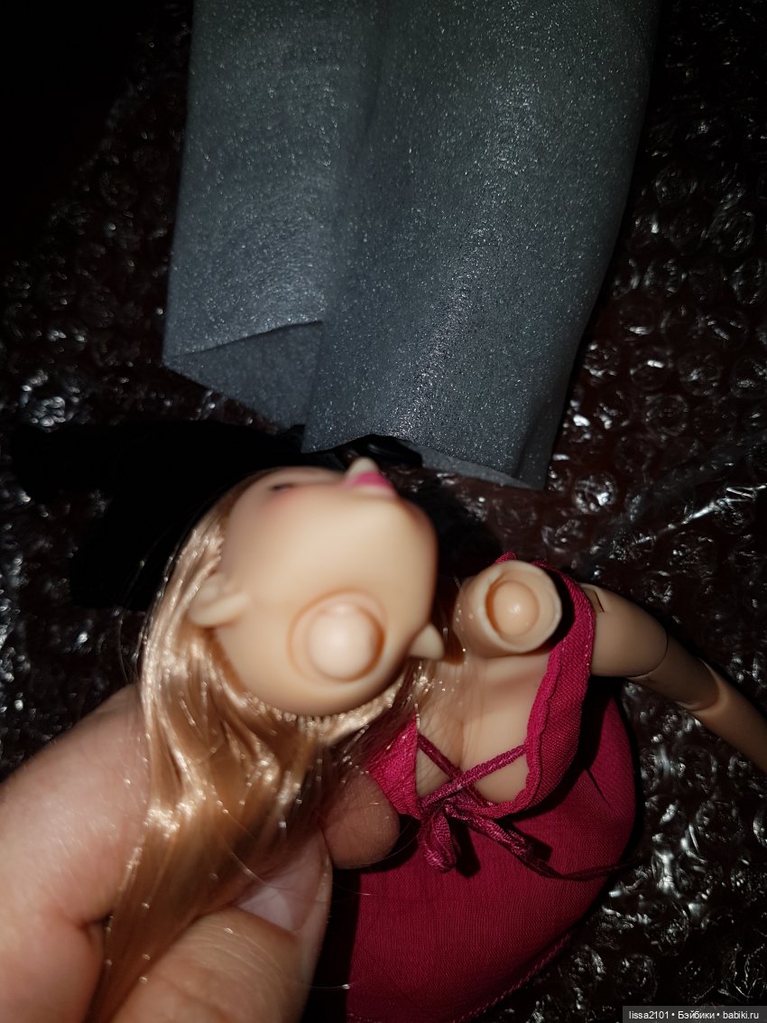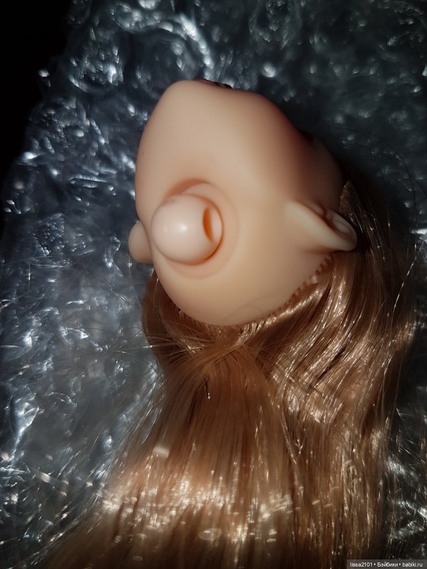 Шарнир не сломан, детали не утеряны. Просто голова плотнее была сцеплена с якорем, чем шея с якорем. Это не удивительно. Отверстие в голове Момоко меньше диаметра шеи Азон. Своей я его расширяла, как поступили здесь — не знаю. Возможно, голова держалась только на якоре, не обхватывая шею (и поэтому шея казалась длинноватой).