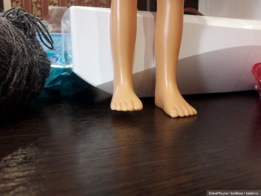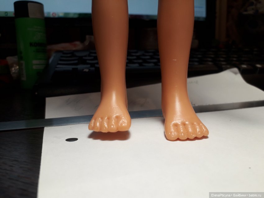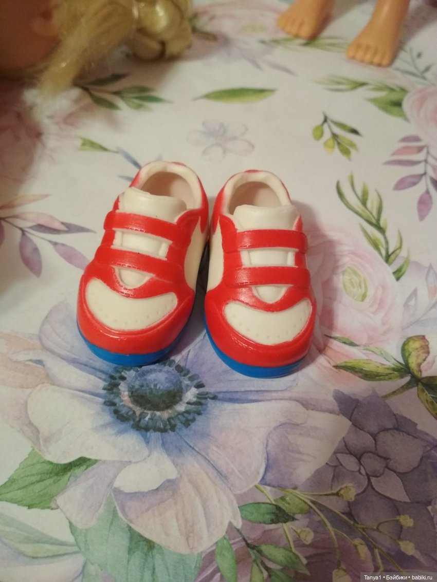 У меня есть ее родные кроссовки. Я могу Вам продать, Вы наклеите на одну кроссовку толстую подошву снаружи. Но они, хоть и родные, смотрятся неуклюже, так как они большие, больше, чем нога. Это на тот случай, если Вы сильно переживаете за куколку.