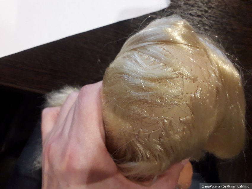 И волосы прошиты неравномерно по всей голове.