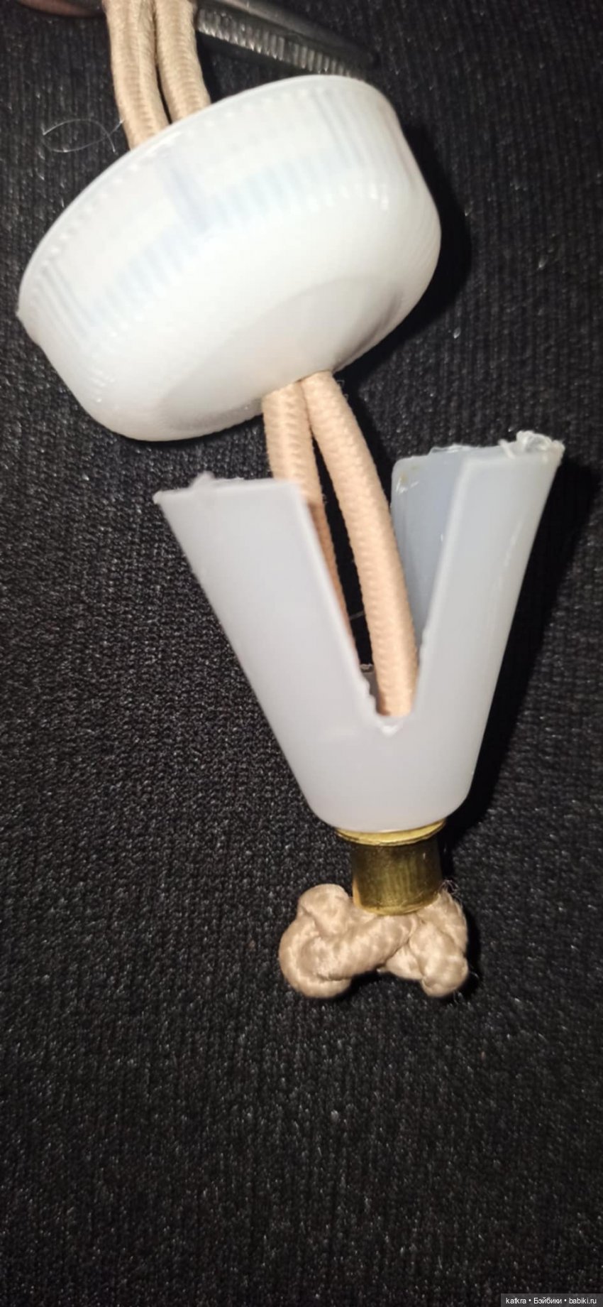 И белая пластиковая деталь, из которой выходит резинка — крепление, должна стоять ровно в отверстии головы. Наверное она сама ровно встанет, когда будет исправлена форма отверстия с голове.