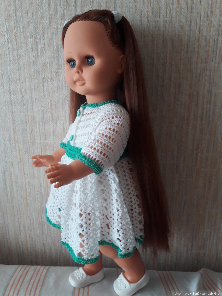 После небольших дискуссий, сошлись на том, что это Бигги. Но меня больше волновало не происхождение куколки, а предстоящий ремонт. Как я и предполагала, это оказалось для меня не таким простым делом. Конечно, я допускала ошибки из-за своей неопытности. Но, я уверена, что в следующий раз у меня получится лучше. А эта куколка вполне довольна сейчас своим внешним видом. Мне кажется, что она очень умная и серьезная девочка, очень внимательно смотрит на мир своими новыми глазками (один её родной глаз пришёл в полную негодность). Новый пальчик тоже не идеален, но в жизни это не так заметно, как на фото. Для восстановления пальчиков я использовала смесь силиконового герметика с крахмалом и добавлением акриловый краски (не получилось подобрать точно по цвету). Думала, что после высыхания смогу отполировать, но оказалось, что это нереально, так что получилось то, что получилось) Пяточку запаивала кусочками пластика от крышки банки, а потом покрасила все той же слабо подходящей по цвету акриловый краской. В следующий раз буду стараться добиться лучшего результата). Тело немного полировала, но там ещё очень много работы. Платье шила без выкройки, просто интуитивно, на ходу меняя идею. Босоножки сделала из кружева и фоамерана (может не лучший вариант материала, но моей девочке нравятся). Широкая лента в волосах пытается сдержать буйную челку, которая постоянно стремится подняться вверх) Надеюсь, что со временем причёска уляжется. Кстати, очень необычно видеть такие шикарные блестящие и мягкие волосы на такой старенькой кукле, которую никто не пытался беречь. Такое качество волос ГДРочек просто поражает! Ладно, хватит разговоров, посмотрите и оцените сами)
