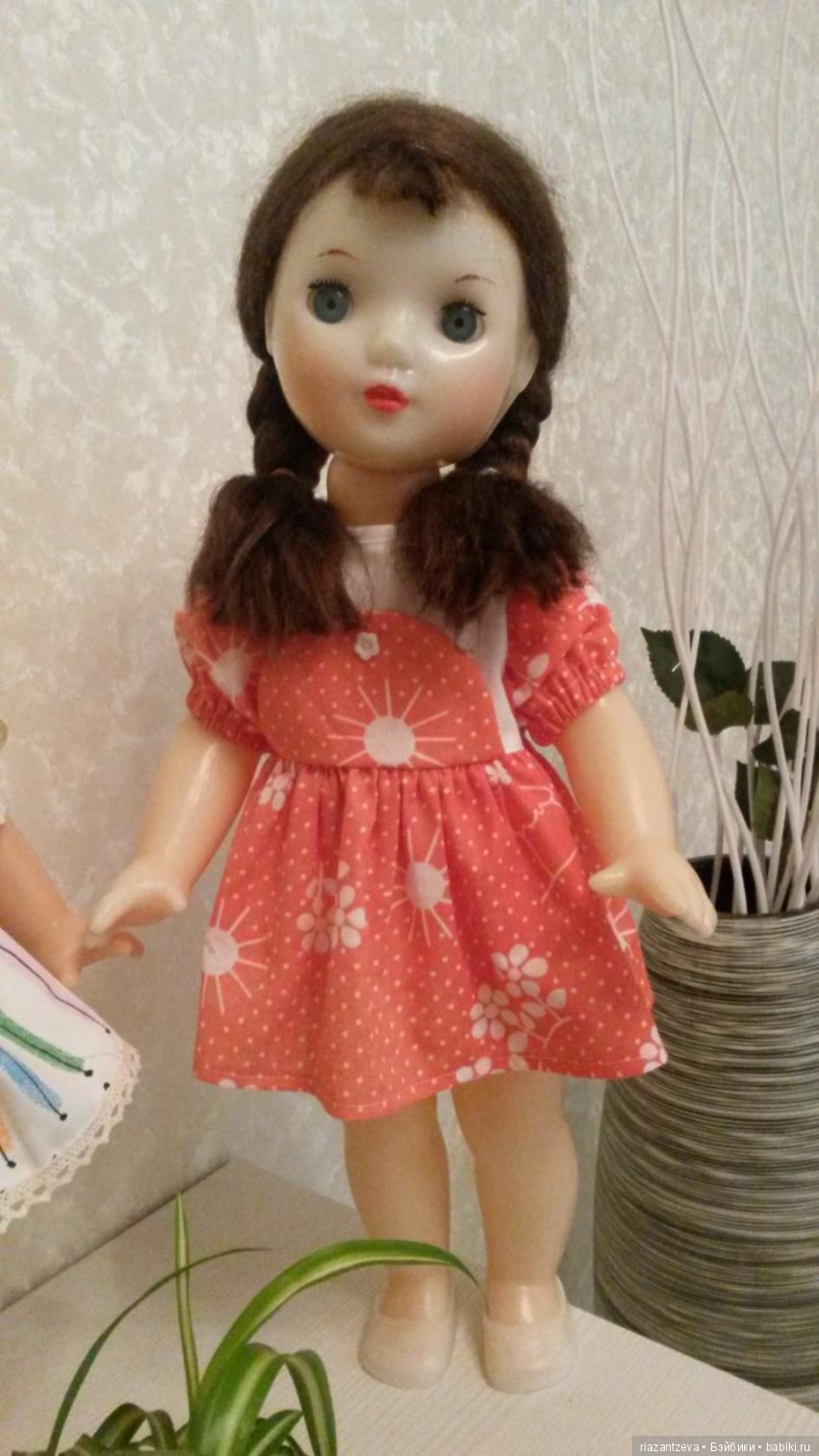 Здравствуйте, дорогие друзья! Спасибо всем, кто голосовал за мою работу в конкурсе «Реставрация». Хотя само понятие реставрации куклы предполагает, конечно, восстановление утраченного, что с большой натяжкой применимо к моему творению. В моём случае старая кукла послужила основой для создания нового образа, без каких — либо попыток вернуть первозданность. Мои потуги определить фабричную принадлежность, имя, ценность не увенчались успехом. Вот только на днях на просторах интернета увидела похожую куклу 52 см Саратов 5000р. И взгрустнула, уж не испортила ли я чего-то ценное, что было бы лучше оставить в нетронутом состоянии?