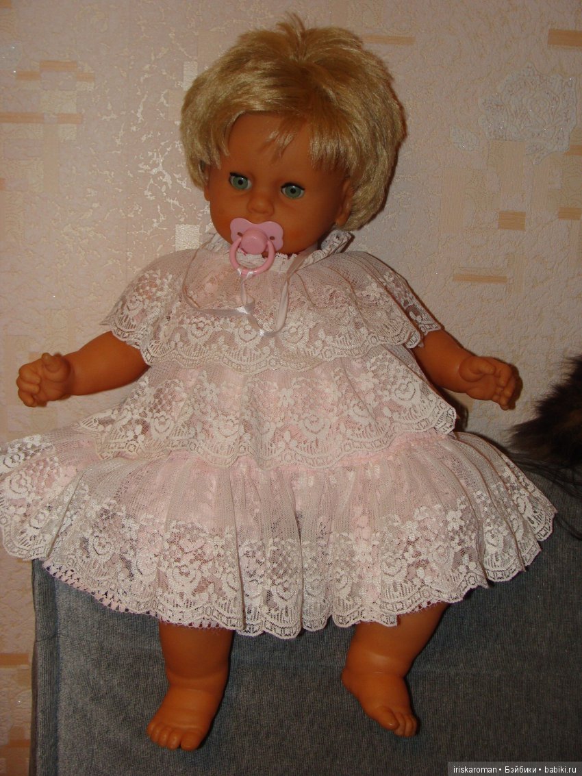 А это наш.Лысенький уехал, а с волосиками пупсёныш так у нас и живёт))Какое-то время был девочкой, но теперь уже пару лет одет как мальчик))