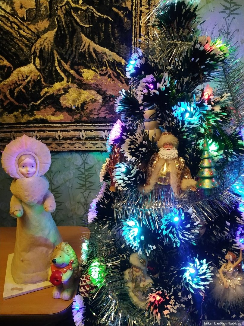 Сняла верхний слой шубы, лицо и бороду помыла в теплой воде с шампунем. Потом все собрала. Укрыла белой шубой, посыпала серебристыми блестками. ( правда, фото передает слишком серо, на самом деле свежий, белый, новый Дед Мороз)