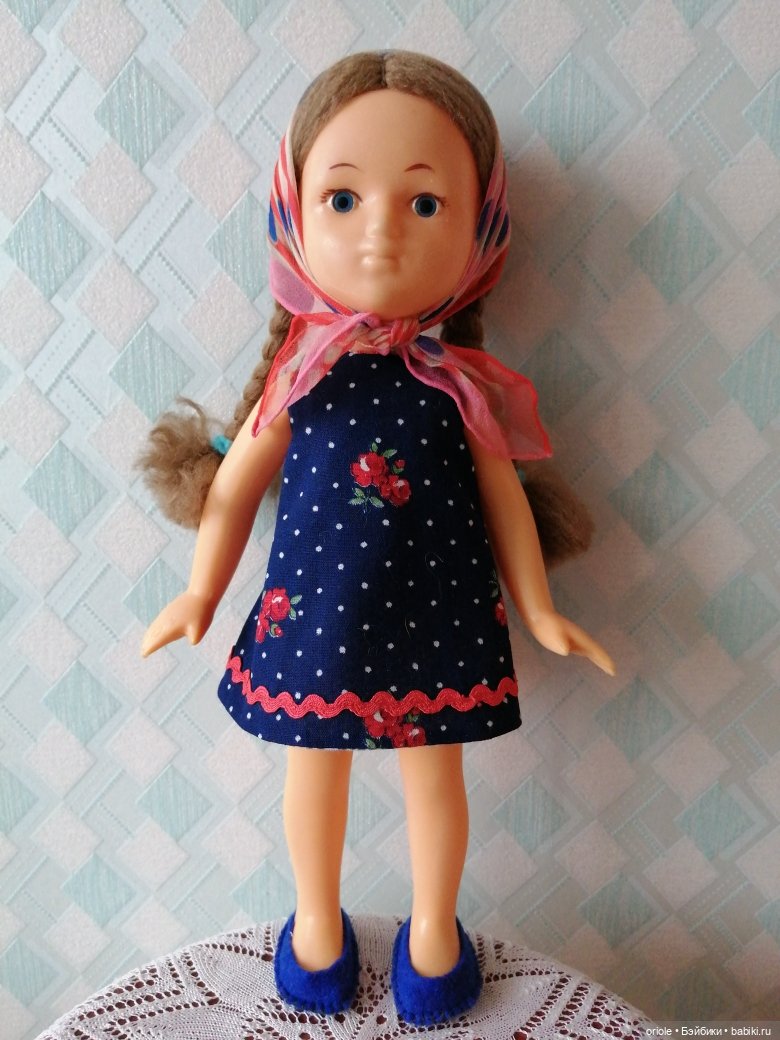 А под платьицем купальничек! Такое ощущение, что куклами не играли, просто стояли, переставляли их с места на место, а потом за ненадобностью выкинули. Иначе как объяснить наличие родной одежды. Обычно дети сразу куклу раздевают. Не все, но многие и как правило платья теряются, а тут при полном комплекте.