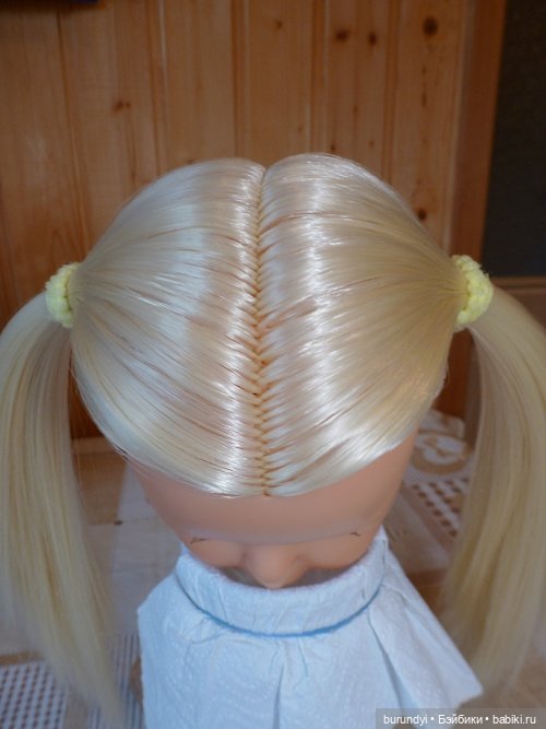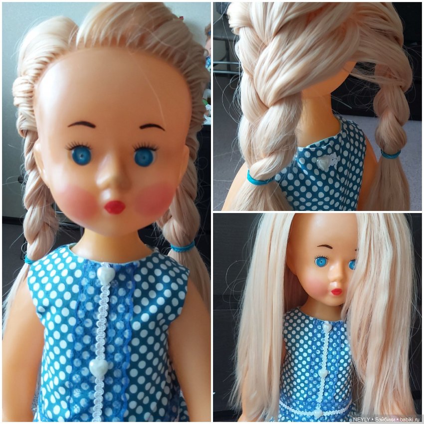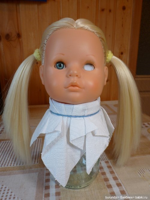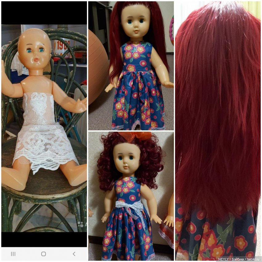 Волосы на таких куклах лучше смотрятся донорские, можно со старенькой немочки например. Я взяла с почерневшей топтыжки. Результатом очень довольна.