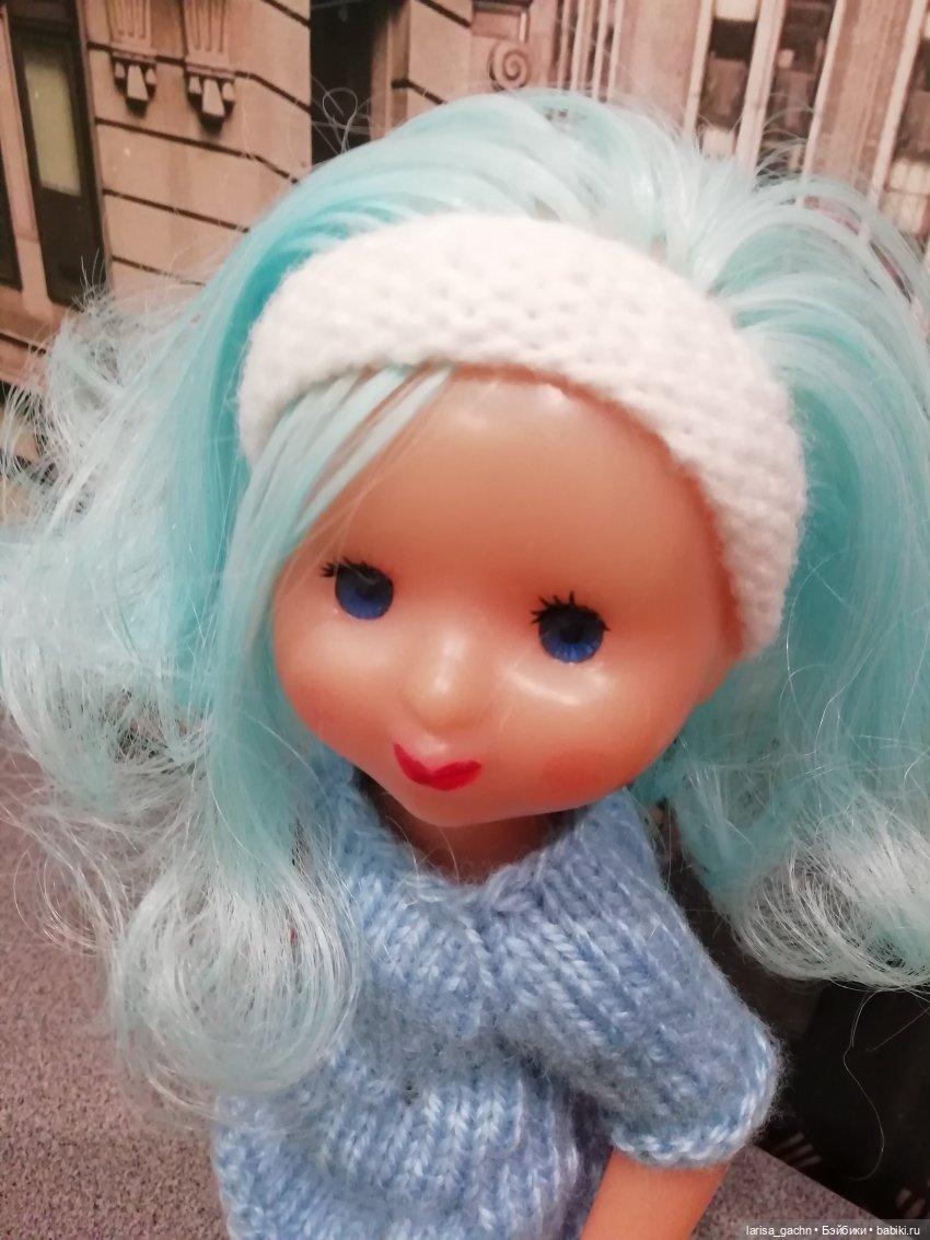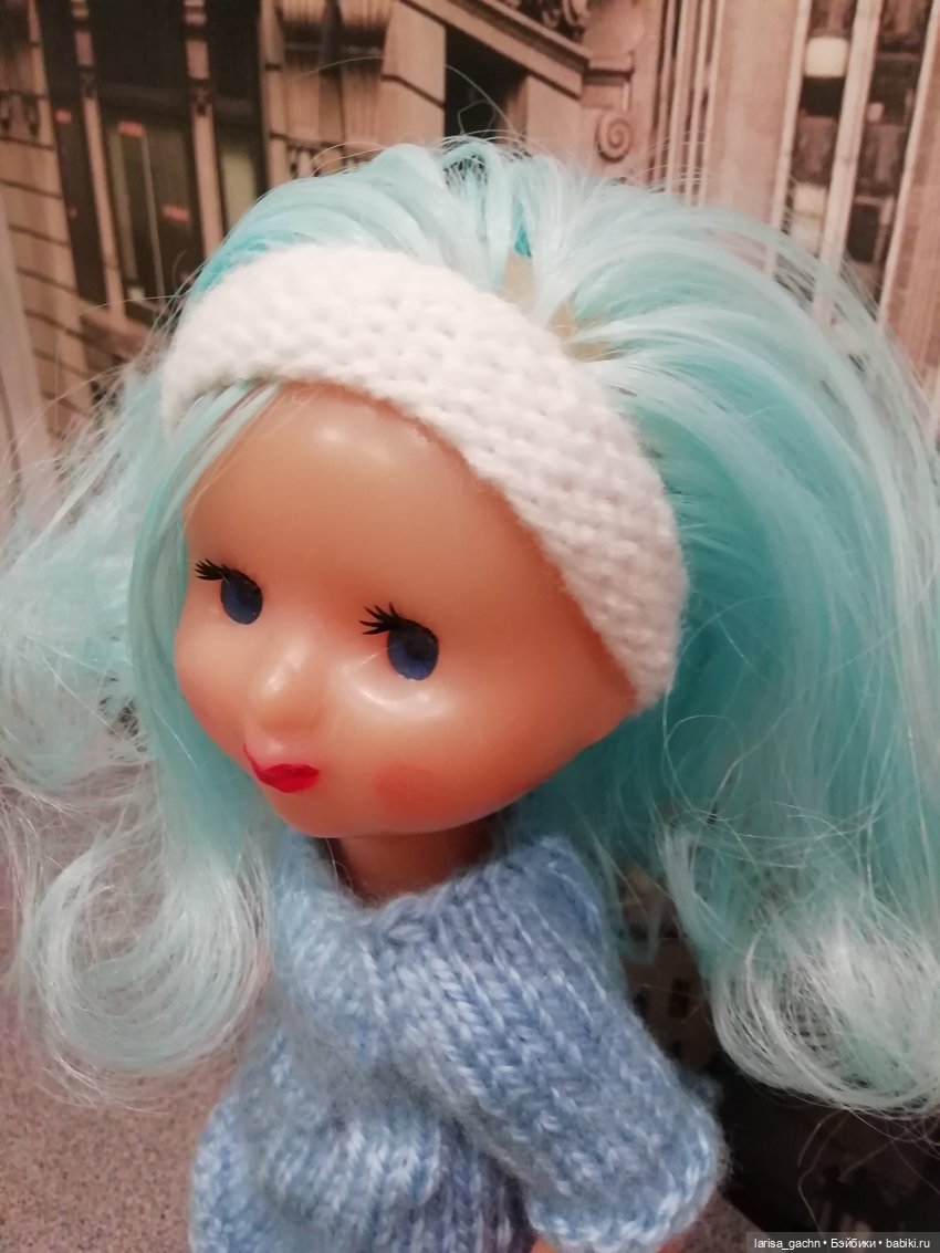 Это куколка моего детства. Со временем волос совсем не осталось. И она ждала своего времени. Решила перепрошить голубыми трессами. Было