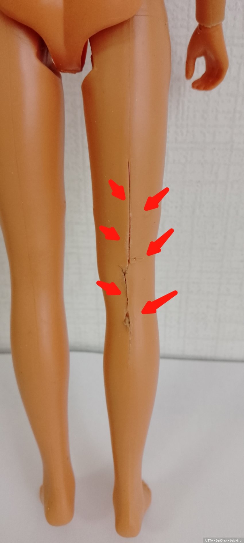 Да, ногу я аккуратно склеила по тому же разрезу, который сделала ранее. На фото шовчик стрелочками обозначила)
