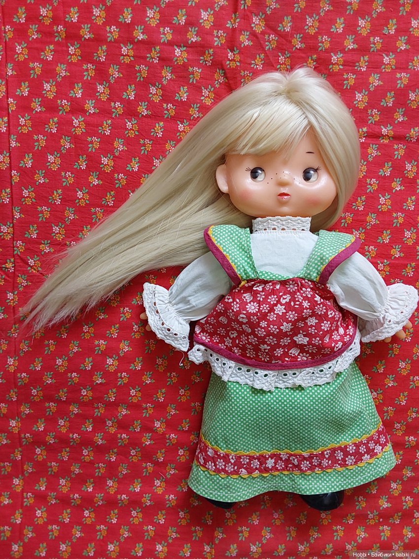 Чистка, пайка пейта и кистей рук. Рисовка лица эмалью. Волосики новые. Ну и костюмчик для девочки Мальвины, который не стыдно надеть.