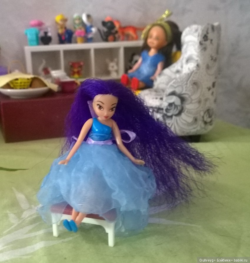 Вариант с кондиционером прекрасно работает, я даже Мериду, а у неё волосы вьются, расчесала. Тут терпение нужно, процесс долгий и довольно нудный. Прямо любой кондиционер для белья (кукольные волосы ведь синтетика, значит так с ними и обращаемся) разводите в воде и на 3-4 часа туда голову куколки опускаете, отжимаете и потом на полотенце тоненькие прядочки (не всю копну сразу), начиная с концов, прочёсываете.