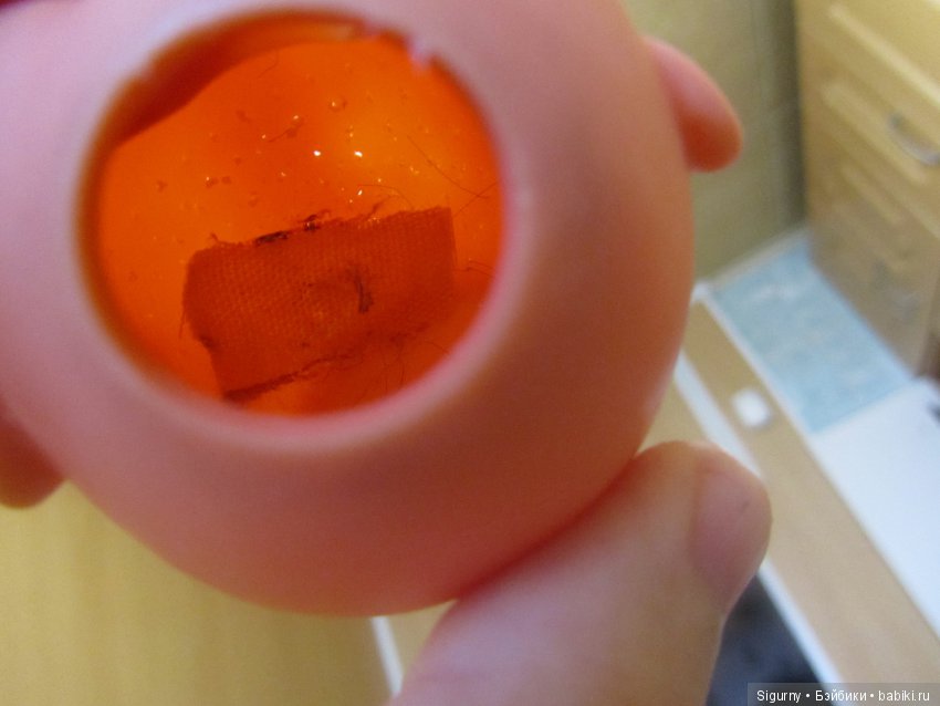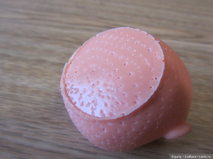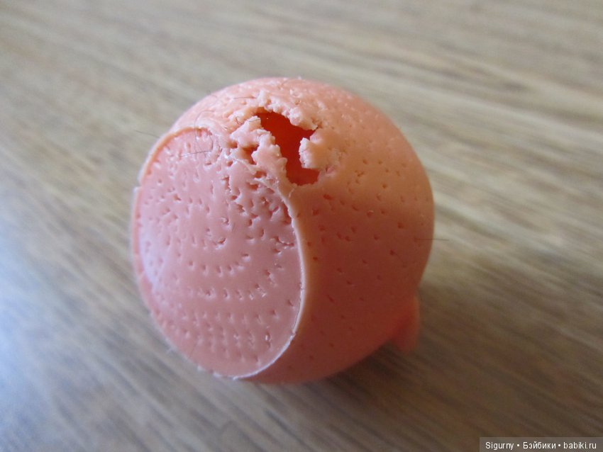 Удалили все волосы, т.к. нам нужны длинные и светлые, вьющиеся. Кстати, тут хорошо видно, что после того как волосы я убрала (сразу скажу, что убирала очень аккуратно) в голове остались такие неприличные дырки, да еще и линия волос мягко говоря кривая, видимо именно на этой малышке сильно дрогнула рука у мастера.