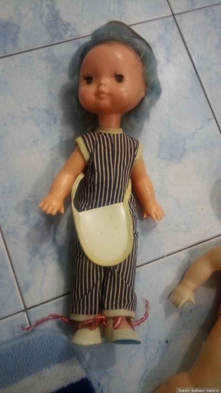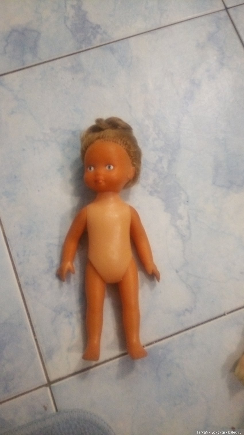 Куклёна ГДРочка 1980-х годов (если, конечно, я правильно определила по фото и описаниям в интернете). Прелестная немецкая куколка с прошивными волосами, нарисованными глазками и туфельками. Резиновая голова, ручки и ножки поворачиваются, правда нет одного пальчика. Волосы целые и очень густые, и увы, короткие