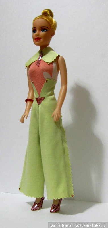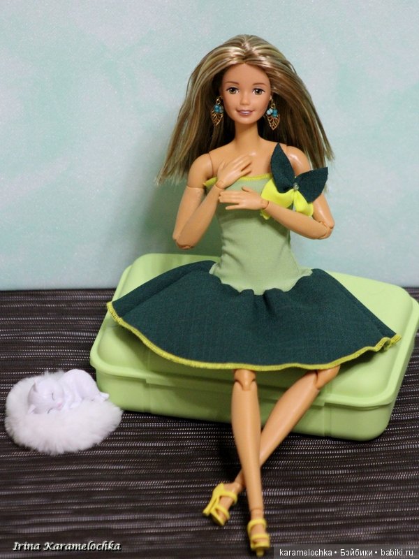 Верно вы заметили про роль наряда: это платье Марии полюбилось, именно под это платье я мастерила ей эти серьги (есть, кстати, ещё одни и тоже к этому комплекту — на фото с Жасмин их видно), и босоножек под этот наряд у неё аж две пары — салатово-зелёные и жёлтые. :) Так что да, кроме обретения ею подвижного тела было важно сохранить ей возможность носить любимые комплекты!))