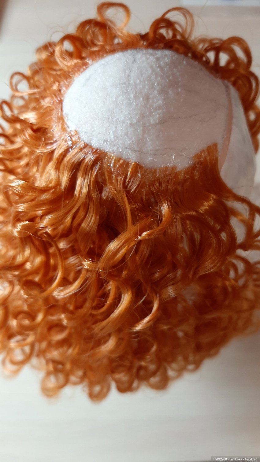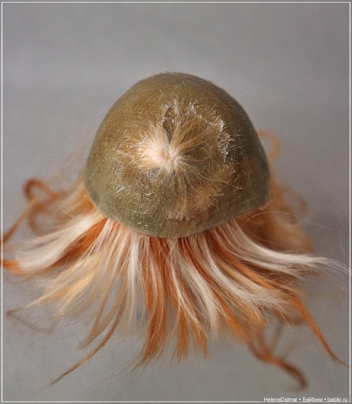 Вид изнутри. Здесь клеила иск. трессы. Это вообще быстро делается. И макушка — пучок в дырочку, распределить солнышком, промазать силиконом.