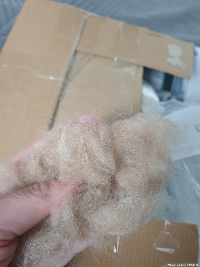 В общем, раньше, я имела некоторые отношения с шерстью… В детстве, в Южной Осетии помогала (по мере возможности) с одеялами. Тетя и бабушка делали «начинку» из шерсти. Задача детей была распушать шерсть. Вот эти навыки сейчас бы мне пригодились потому, как из того, что я получила только такое бы и получилось. Мех очень короткий, ни о какой прошивке речи быть не может. Хорошо, что совсем чуток взяла.
