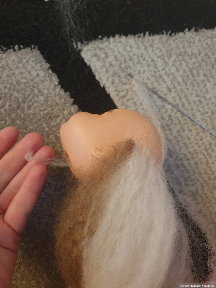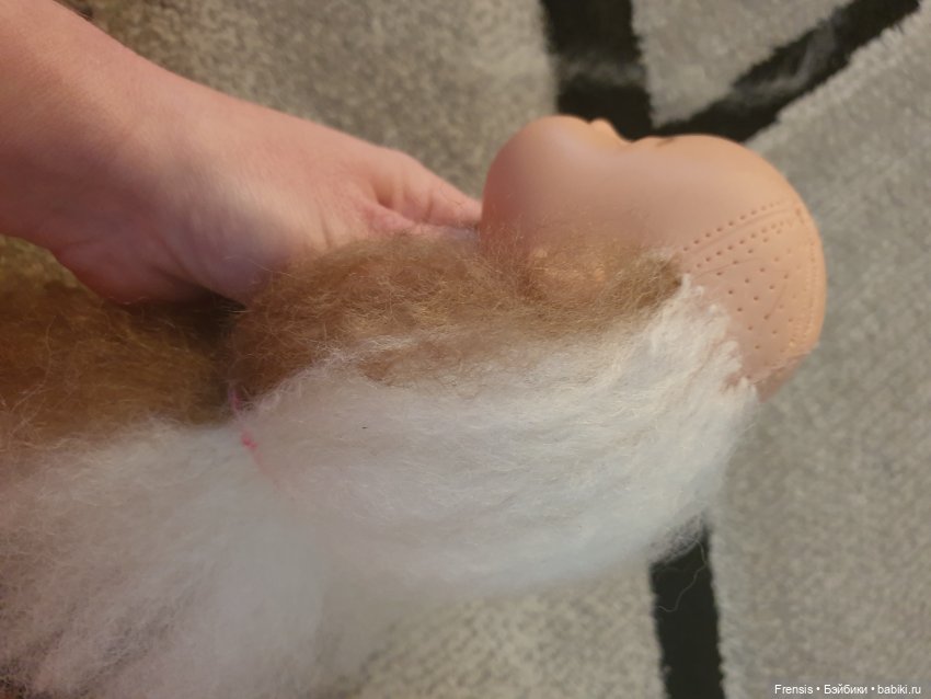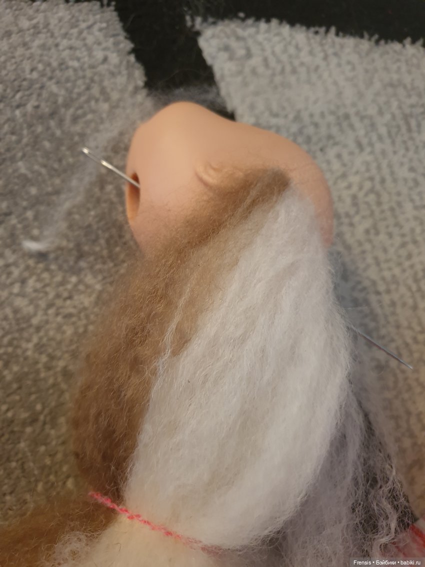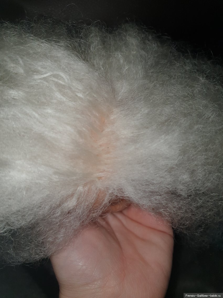 Тот клочек козочки, что у меня есть намнооого приятнее. Там волос гладенький, блестящий. Больше с овцой не связываюсь. Тем, что есть, попрошиваю кого не жалко, а дальше — только коза или искусственный, может, хороший волос найду. Вот бы понять, чем паолок прошивают!