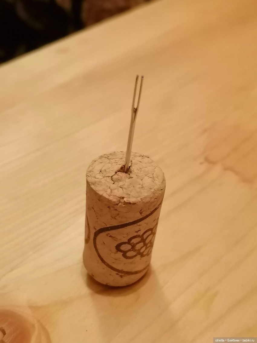 Я воткнула иголку в обычную пробку и приходится наперстком при шитье поддерживать, чтоб фиксировать