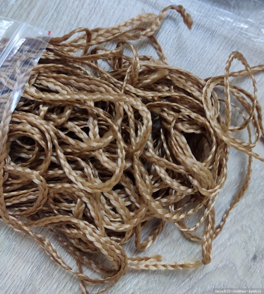 И тогда было принято решение поэкспериментировать. Лежали у меня вот такие косы-трессы, не кукольные. Синтетические, но для «человеков».