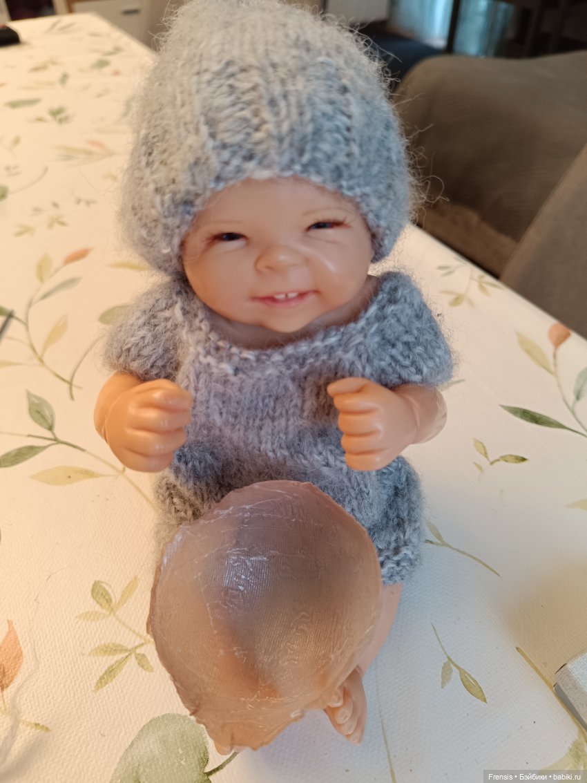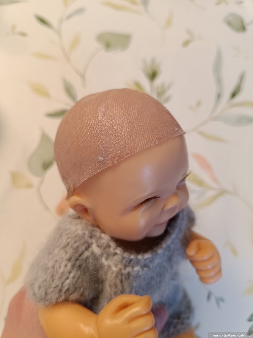 Попробовала я парик из силикона слелать — ничего не вышло. Сделала маленький — младенец ведь, там нужно то пару волосинок… Фигня вышла. Парик слишком толстый, хотя старалась не густо мазать. И если волоски жиденько вплавлять, вся эта красота будет видна.
