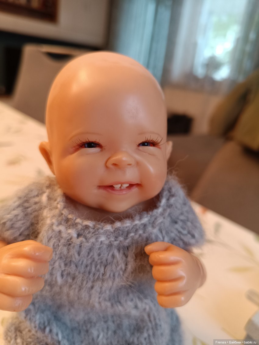 Приятельница на том же рынке была чуть раньше меня, повертела детку в руках и оставила, не понравился. А по мне так мордаха невероятно улыбательная! Ну не знаю, как продать, ведь как живой!