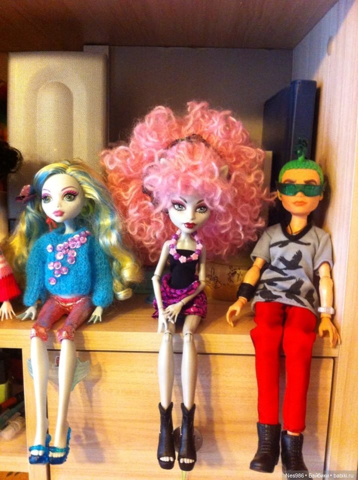 Прочитала, что отличные парики получаются из мохера. Шёл 2013 год, первый месяц в кукольном хобби, у меня было всего 4 куклы, все Монстер Хай. И никакого опыта в шитье париков. Найти в интернете как сделать выкройку шапочки нужного размера и нашить на неё трессы, это я смогла. Сообразить, что нужен не тот мохер, из которого вяжут, нет))