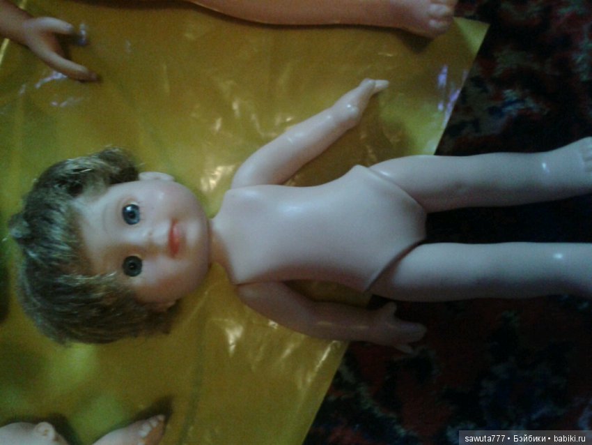 Две недели назад приехала последняя наша девочка — брюнеточка, но она уже китайского происхождения, заказывала ее в интернет-магазине. Мальчики были куплены в желтых коробочках под названием «Крошкины ладошки» волосики у них прошитые, глазки поменьше чем у девочек. А блондиночка — это как раз и есть Шадива, волосики у нее паричком. Но все они очень хорошенькие.