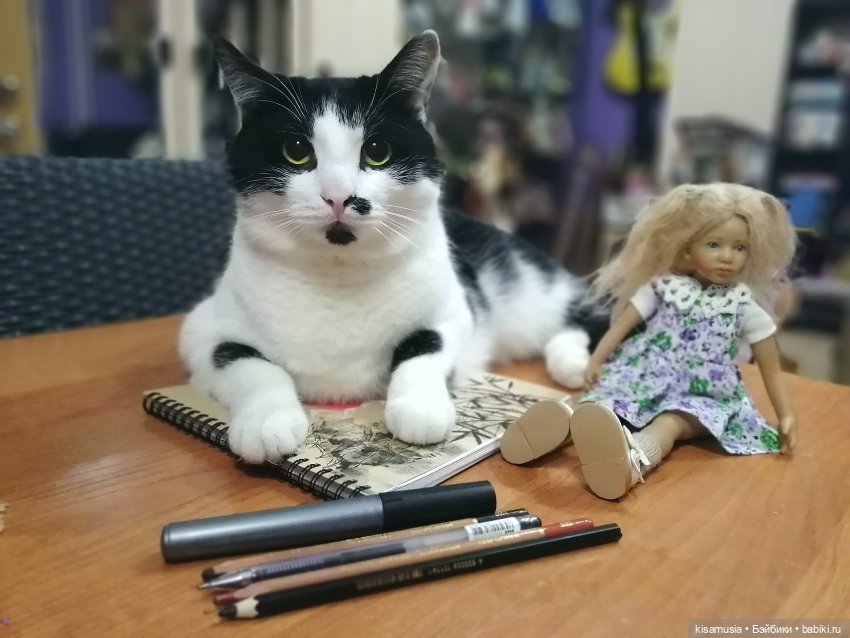 Я уже давно рисую своих кукол в самых разных техниках, и акварелью, и акрилом, и чёрным маркером. Иногда это — портреты, иногда — натюрморты. Но мне больше по душе, когда куколки кажутся живыми, позируюшими. Вот и сейчас я рисовала их с натуры. Пусть, это — скромные наброски, но на них же любимые куколки!
