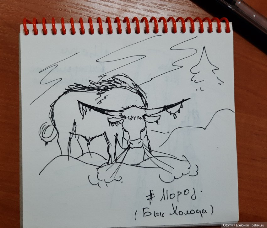 Бык Холода — Тымныы огус — мифическое якутское существо, которое осенью выходит из Северного ледовитого океана и приносит зиму в Якутию. Решила пояснить почему на тему «мороз» у меня бык нарисован🙃