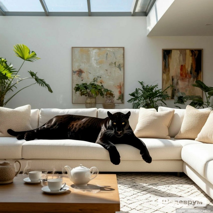 вот тоже чëрная кошечка и немного растений. 😺🪴🪴🪴 (ИИ)