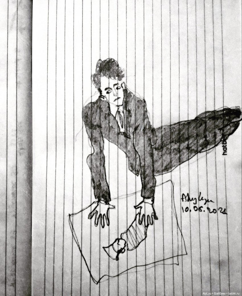Особенно его графика, его работы в качестве фотомодели, его взгляд на мир.