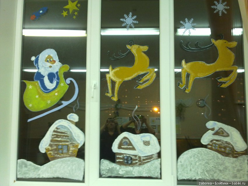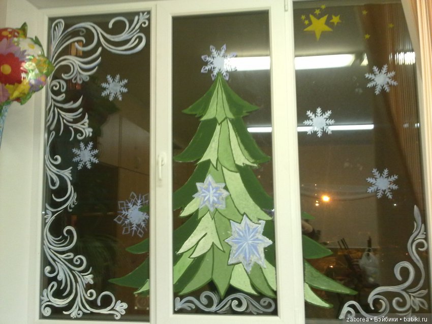 А это в школе на окне. Надо было сделать объемный рисунок с уличной и внутренней стороны.