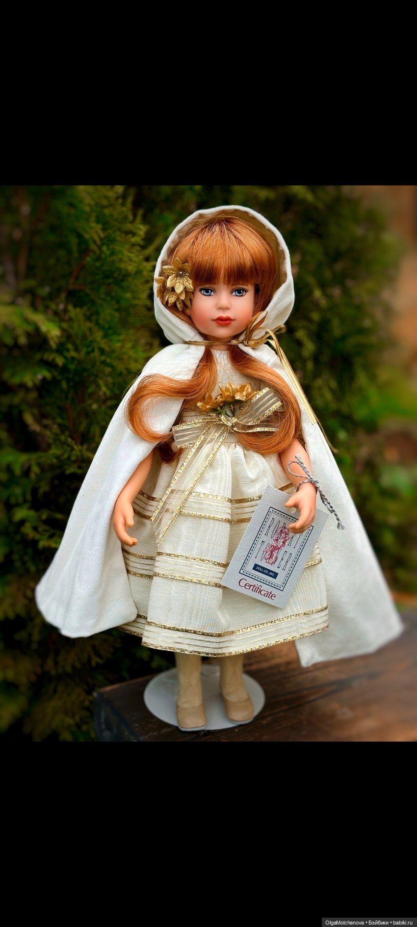 Недавно я получила посылку с заветной куколкой Роберта Тоннера, которую очень ждала. Эта куколка была частью первого рождественского выпуска 1994 года, то есть ей уже 31 год в 2025 году. Она восхитительна! Её внешний вид сохранился в первозданном виде, как будто Роберт Тоннер только вчера нарисовал ей личико (а он сам рисовал лица таким куколкам) и сшил наряд. Цвет винила не потускнел, а остался приятным персиково-розовым. Повторюсь, куколке 31 год, и она в отличном состоянии.