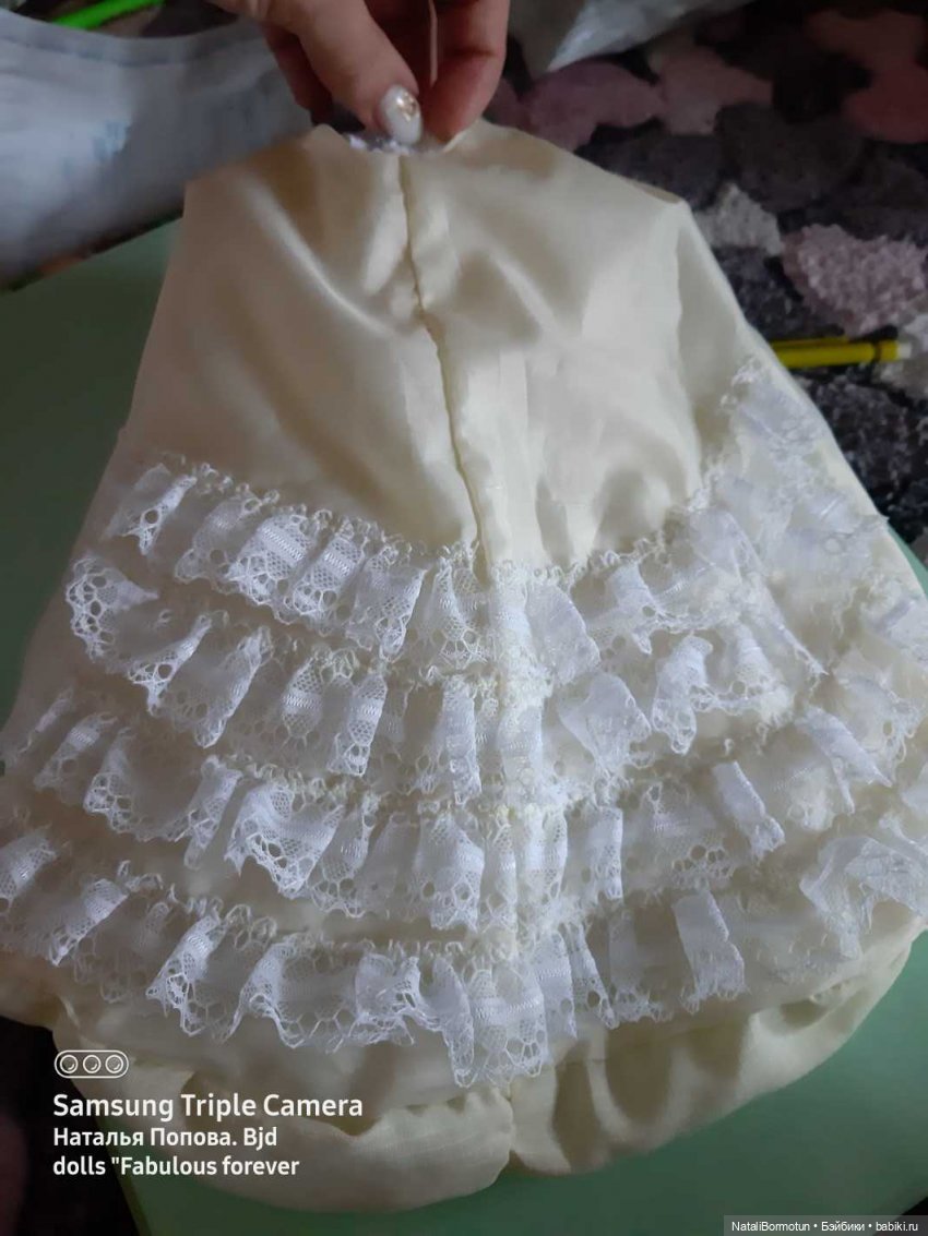 Т.е только на 1/4 часть объёма юбки сзади я нашила ряды кружева.