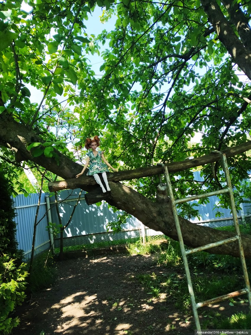 Да, она сегодня все облазила, и яблоню, и черешню, и виноградник, и старую теплицу, которая служит неплохим фоном…и отсутствие обуви не смущает… у нас прошли дожди и травы опять по колено, весело)))