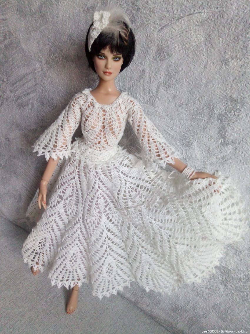 Это она в платье, связанном по схеме салфетки «Перо павлина»