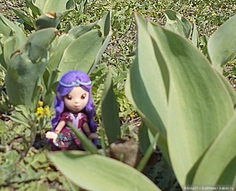 Бетси оббежала весь сад! Полюбовалась весенними цветами. Познакомилась со стражем сада — Гномом Палисандром. Попозировала на фоне пиончиков. Чуть не потерялась на одуванчиковом поле. В общем была очень активна и деятельна.
