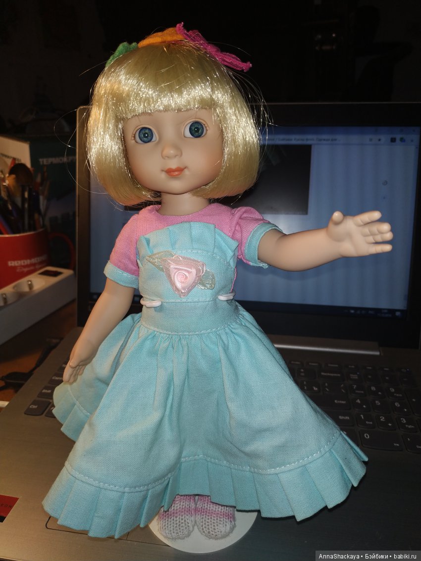 Выбрала себе в подарочек Патси, а маме Энн. Заказала и почти одновременно они пришли. А сегодня бродя по детскому магазину увидела ещё одну «сестричку» по формату и не удержалась. Патси темненькая и полношарнирная, Энн не шарнирная, но голова у нее как у минушек двигается. В связи с этим у меня вопрос к знающим и разбирающимся в тоннерках. Есть ли с лицом Энн, но шарнирные варианты? И есть ли просто тела Тоннер 10" в продаже и где? Приглашаю сестричек в гости.