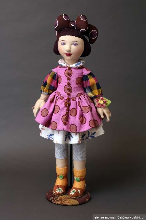 Кукла мягкопопая, тело сшито из структурного жаккарда. Конечности очень подвижны.