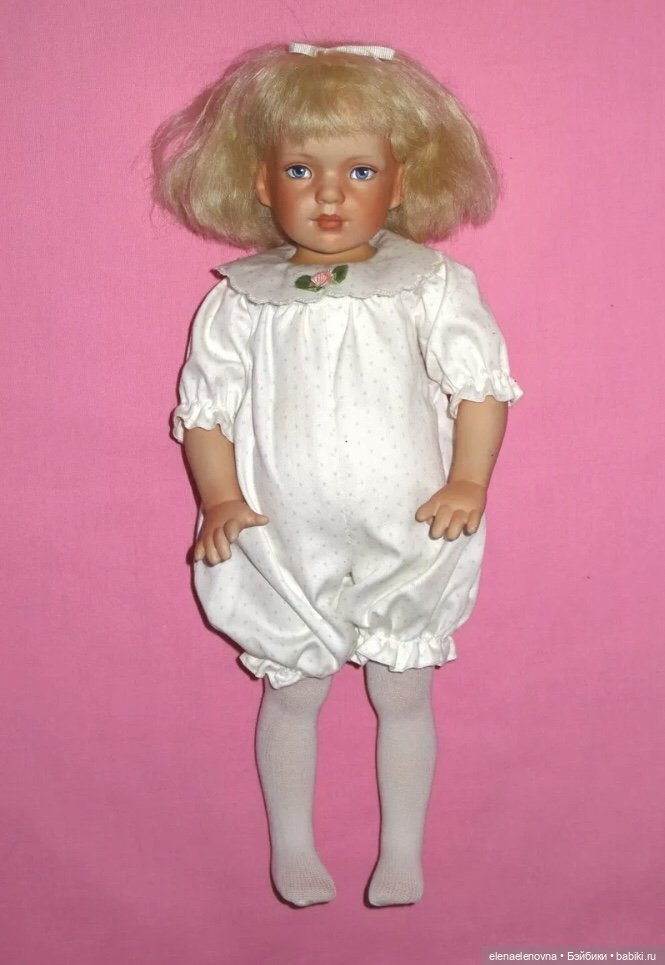 Кстати о паричках. Конечно же, и глубина посадки паричка, и сами парички (да и роспись лица, и многое другое) неповторимы в каждой куколке того времени, ведь они студийные, ручная работа из мастерской Роберта Тоннера. И лимиты маленькие из-за ограниченных возможностях при ручной работе. Сравните паричок нашей Златовласки с фото обложки журнала, а также еще одной Златовлаской из книги о творчестве Роберта.