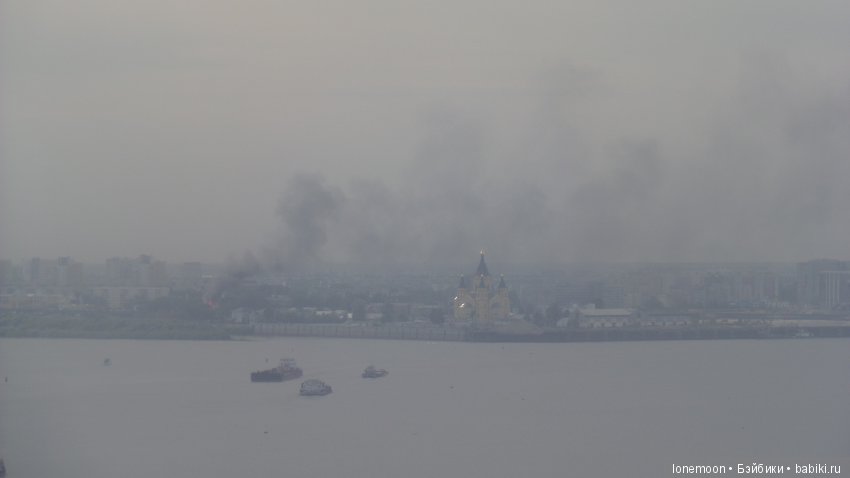 Вдалеке видна Стрелка — место слияния рек Оки и Волги.