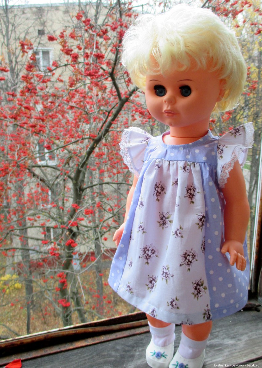 Жила была кукла в моих детских руках, но как и когда появилась не помню, совсем! И недавно для неё нашлась новая чудесная любящая хозяйка Оля, так как продать я свою куклу решила. Но ещё было чуточку времени до отправки и так как Оля очень вдохновенно просила пару платьев, я решила попробовать их сшить.