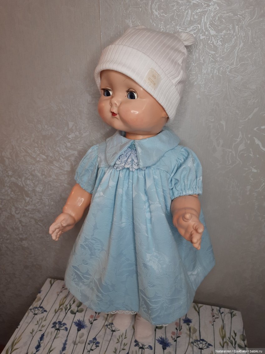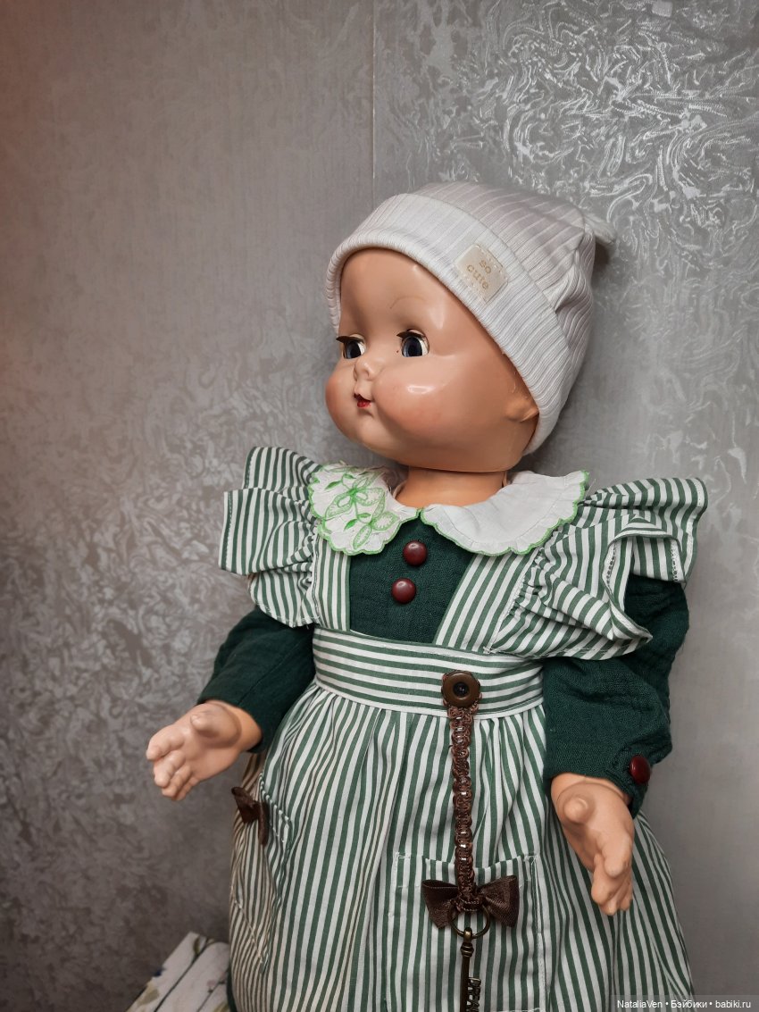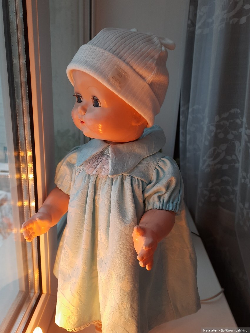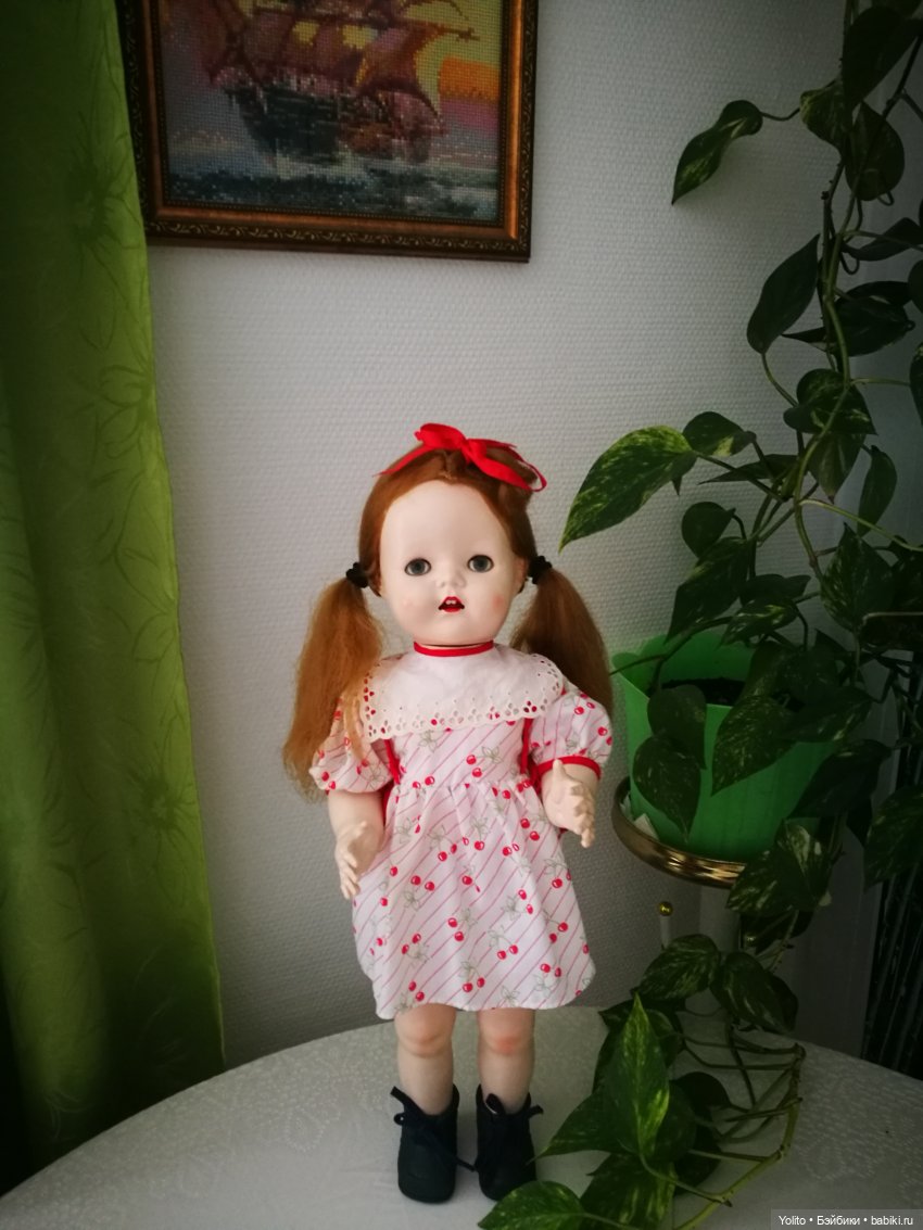 Я не стала спрашивать историю куклы. Собиралась, но когда взяла её в руки, поняла, что не хочу знать — кто, где, когда, откуда. Она была любимой, ей 70-75 лет (самый конец 1940-х — начало 1950-х, 'официально' — 1949.). С ней активно играли, наряжали, потом хранили. Каким-то чудом она оказалась в России. Ещё одним чудом — у меня. Получила повреждения, старые и новые — по словам продавца, упала уже прямо перед отправкой. Так спешила ко мне, или наоборот?..