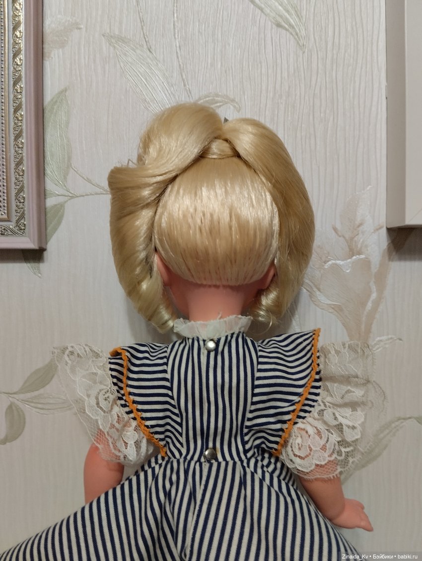 Надо признать, куколка выполнена мастерски: вышивка, а не принт, приятные кружева, колготки, туфли, заколки, сеточки в прическе и тд! Я в восторге. Ручки такие же приятные, как у немок, и формат куколки такой же.