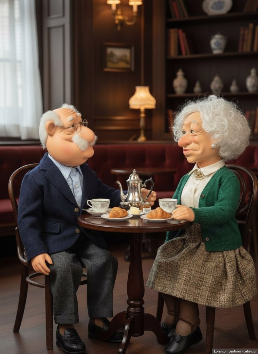 А я увидела в этой шикарной бабуленции старшую сестру моложавого деда. Бодрая старушка приятной наружности, изящной окружности. Чистокровная англичанка! И дед хорош до невозможности, притягивающий взор.