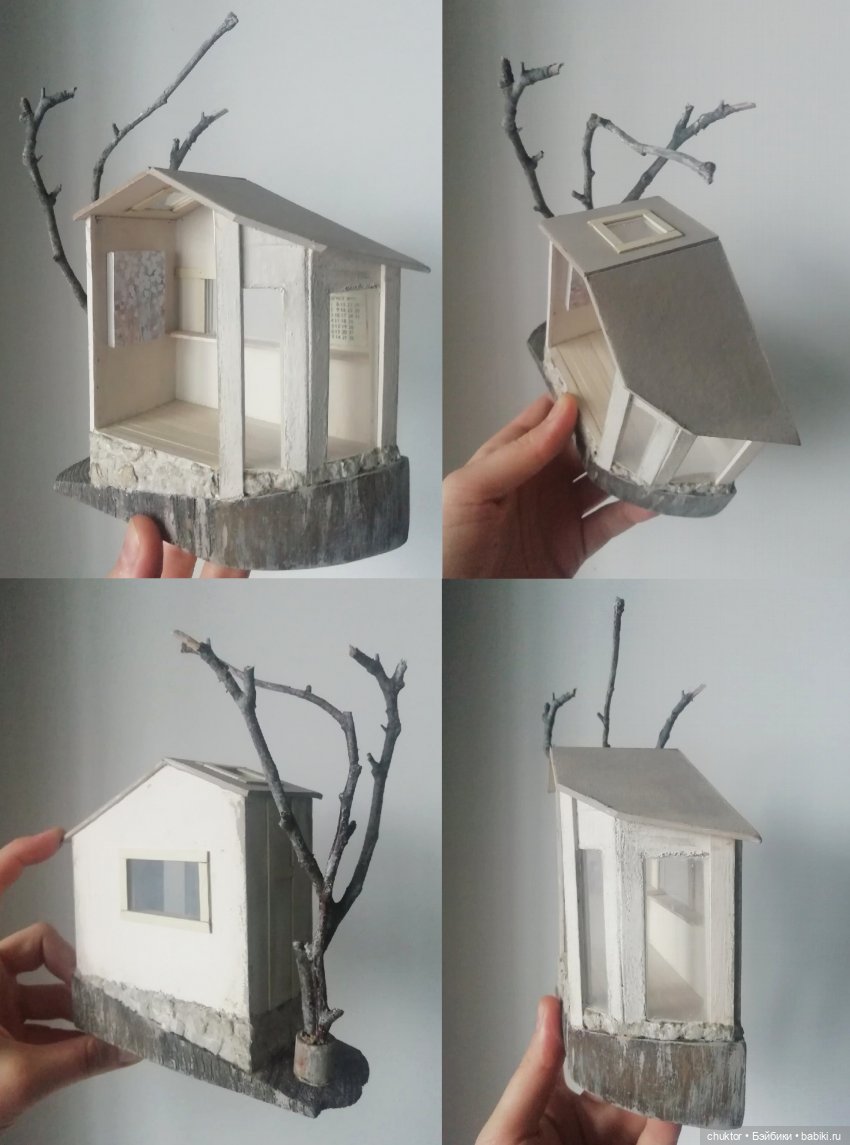 Это был вызов — сделать полукруглый домик по форме деревяшки — я не смогла удержаться