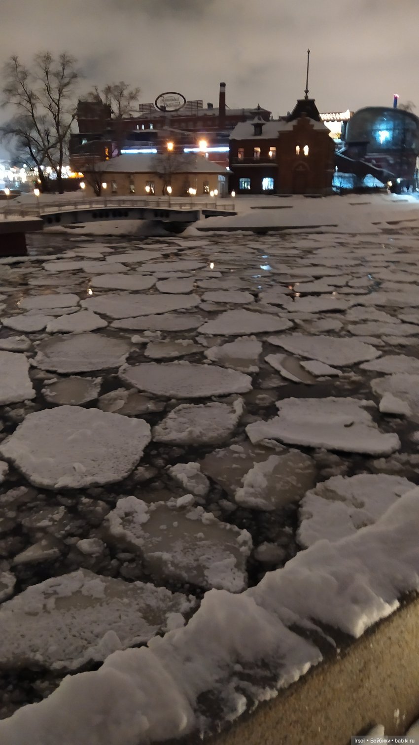 Поискала быстро в телефоне — ну только фоточка январской Москва-реки вам. Может, и не совсем по теме — всё-таки центр, но темень вод во льдах тоже завораживает)):