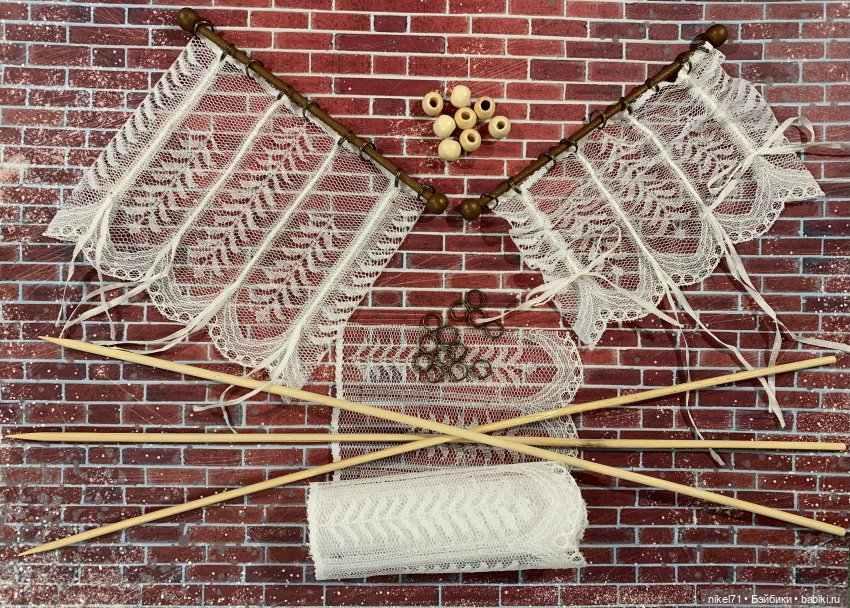 По поводу шторки, осмелюсь посоветовать кружево (в Леонардо точно есть разных цветов) — из него очень удобно делать «французские» шторки 1/12 (вдруг, пригодится):