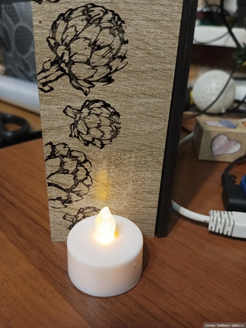 Как идея — вдруг пригодится: в фиксе продаются свечки с мерцающим светодиодом, как будто огонек горит. Там внутри светодиод, микрик и батарейка таблетка). Размером как чайная свеча.