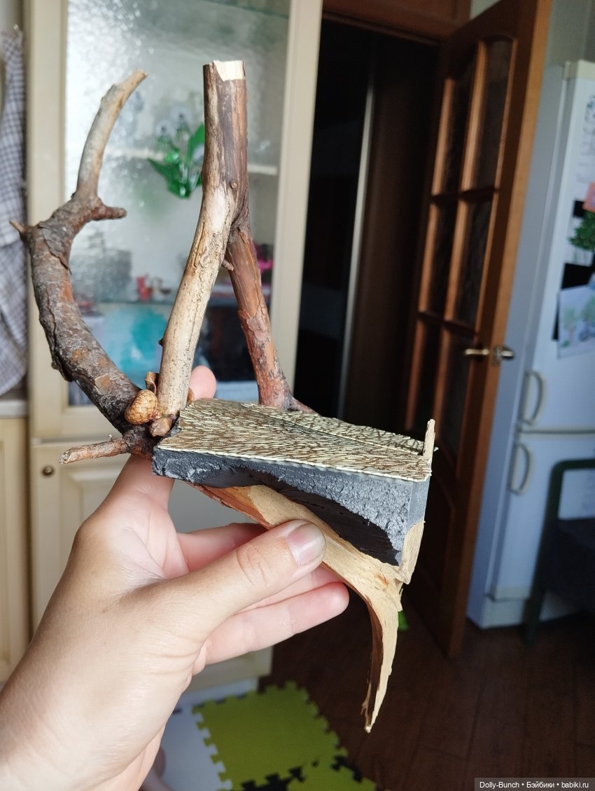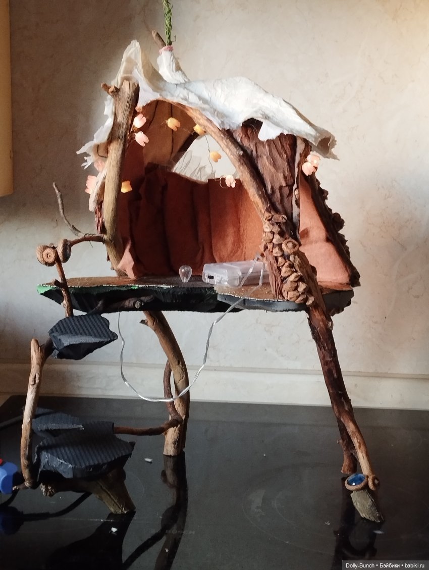 Здесь может быть не очень видно, но я намеренно оставила на крыше паутинку (сопли🤣) горячего клея. Уж очень натуралистично она легла.