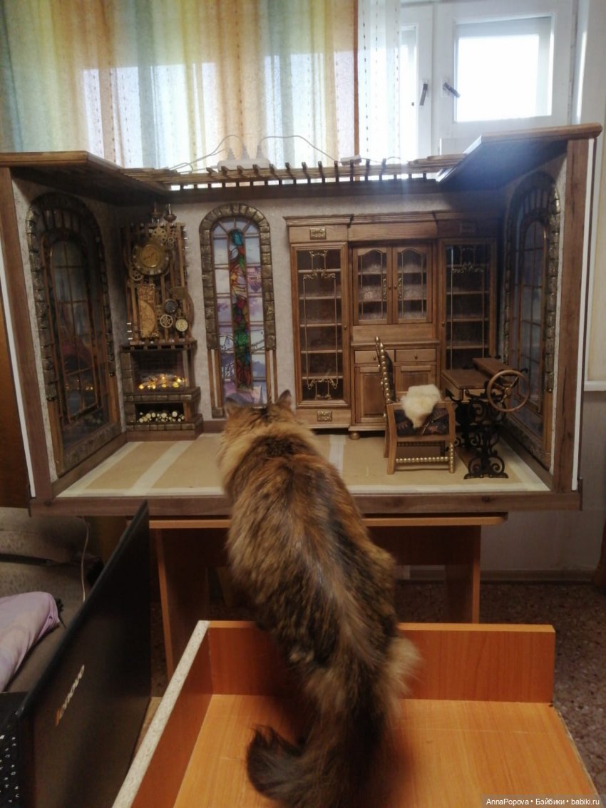 Прекрасная, просто потрясающая работа! И отдельное спасибо за фото техническое с котиком. Даже не верится, что это всё в миниатюре, кажется, всё реальное, человеческое, большое, а тут все кукольного размера! Я в восторге!